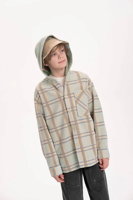 Рубашка флисовая для мальчика. Теплая толстовка в клетку идеальный вариант для весны. Застегивается на кнопки. Капюшон выполнен из футера, без регулировки объема. По переду накладной карман. Манжеты на рукавах застегиваются на кнопку. Размерная линейка подходит как для малыша так и для подростка.