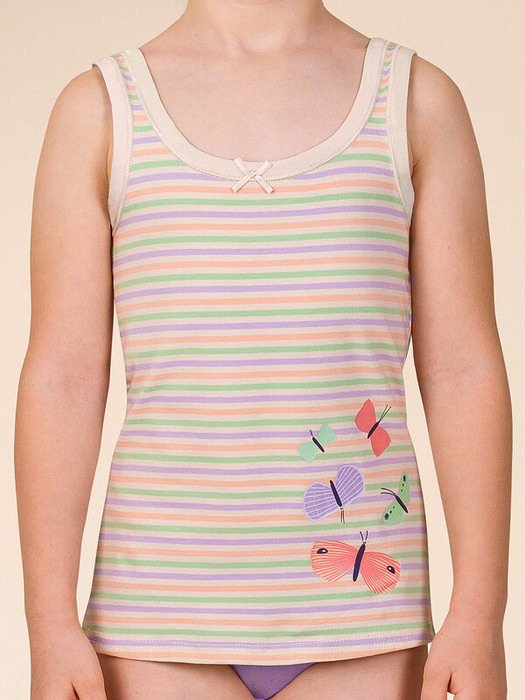 Каждая мама заботится о комфорте своего ребёнка и хочет выбрать для него только действительно качественное бельё. Наша красивая майка для девочки отлично подходит под эти запросы. Майка детская выполнена из ткани с высоким содержанием хлопка — она приятна на ощупь, великолепно пропускает воздух, позволяя коже ребёнка дышать. Эластан помогает изделию сохранять отличную форму в течение длительного времени. Качественная ткань и правильный крой гарантируют идеальную посадку — ребёнок чувствует себя комфортно целый день. Горловина и проймы обработаны эластичным пайпингом в тон — они не растягиваются и надолго сохраняют прекрасный внешний вид. Хлопковая майка персикового цвета в полоску подойдёт любой девочке. Майка декорирована милым принтом в виде бабочек и атласным бантиком. Принт мягкий и устойчивый, отлично переносит стирки. В линейке представлены майки детские следующих размеров: 1 (86); 2 (92); 3 (98); 4 (104); 5 (110); 6 (116); 7 (122); 8 (128); 9 (134); 10 (140); 11 (146). Нательная майка для девочки — идеальный выбор для повседневной носки под одеждой, а также она подходит для летнего отдыха и в качестве домашней одежды. Изделие можно носить круглый год: летом, весной и осенью (демисезон), зимой. Майка детская для девочек — прекрасный подарок дочери, внучке или сестре на любой праздник. Выбирайте нужный размер по таблице размеров на фото. Цвет товара на экране вашего устройства может отличаться от цвета изделия вживую. Товар возврату и обмену не подлежит.