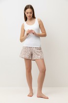 Пижама женская с шортами. В составе ткани преобладает высококачественный хлопок — комплект для сна мягкий, гипоаллергенный и хорошо пропускает воздух. В хлопковой пижаме вам будет комфортно и уютно во время сна. Эластан помогает изделию надолго сохранить первоначальную форму. Майка свободного кроя на широких бретелях дарит комфорт и свободу движений. Шорты свободного кроя, средней длины – для удобства и комфорта. Шортики женские на широкой эластичной резинке – она не давит и не перекручивается. Хлопковая пижама украшена милым, «няшным» принтом в виде забавного зайчика в очках, надписи переводятся: «хорошая атмосфера», «сделай сегодняшний день счастливым» — почувствуйте себя беззаботной девчонкой. Пижамный костюм неприхотлив в уходе. Принт эластичный и мягкий, легко переносит частые стирки. Милая пижама подходит как для сна, так и просто для отдыха дома. Помните о правильном уходе за изделием: рекомендуется стирать при температуре не выше 30 °C, без предварительного замачивания, с изнанки. Это поможет сохранить качество и цвет пижамы на длительное время.