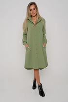 Платье худи женское актуальной длины миди. Платье комфортного свободного силуэта-кокон со спущенным плечом подарит вам комфорт и станет стильным и уютным дополнением гардероба. Фишка модели — капюшон интересного кроя. Край капюшона заканчивается широкой планкой со сгибом — капюшон хорошо держит форму. Манжеты рукавов выполнены из основной ткани. В боковых швах удобные карманы. Интересная деталь — необычный, комбинированный крой рукавов. Модель неприхотлива в уходе. Платье теплое женское выполнено из ткани «французский рубчик» — в составе ткани преобладает высококачественный хлопок, ткань дышит и приятна на ощупь. Полиэстер помогает сохранить цвет и первозданный внешний вид надолго. «Французский рубчик» придаёт модели актуальный объём. Трикотажное платье миди выполнено в в универсальных цветах, легко сочетается с любой одеждой и аксессуарами. Модель лаконичного дизайна, без принта. Однотонное платье худи женское — базовый элемент повседневного гардероба. Платье из футера с начесом можно носить как зимой, так и весной/осенью (демисезон). Помните о правильном уходе за изделием: рекомендуется стирать при температуре не выше 30 °C, без предварительного замачивания, с изнанки. Это поможет сохранить качество и цвет платья на длительное время.