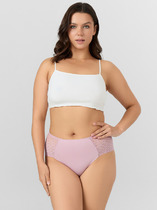 Женские трусы-слипы с высокой посадкой. Изготовлены по бесшовной технологии с минимум швов. Кромки по ноге и по талии подогнуты и приклеены, хлопковая приклеенная ластовица.  Нежное геометричное кружево по линии талии высотой 5 см – не передавливает тело и не натирает кожу.  Модель оценят те, кто ищет незаметное и невесомое белье на каждый день или особого случая.