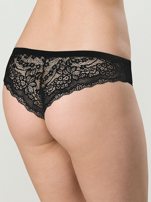 Женские трусы-танга с низкой посадкой. Изготовлены по бесшовной технологии с минимум швов. Кромки по ноге и по талии подогнуты и приклеены, хлопковая приклеенная ластовица.  Нежное цветочное кружево придает модели утонченный вид. Модель оценят те, кто ищет незаметное и невесомое белье на каждый день или особого случая.