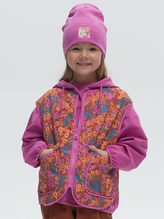 Жилет для девочки, стеганый актуальными вертикальными параллельными строчками с синтепоном 150 гр. Свободного прямого силуэта. Объем жилета такой, чтобы под него можно было надеть любую худи или толстовку. Актуальный разноцветный принт на терракотовом фоне - можно реже стирать. Наличие в составе ткани мембраны делает куртку максимально комфортной при носке. Водоотталкивающая пропитка (DWR) наносится на внешнюю поверхность ткани и задерживает грязь и влагу снаружи. Дополнительный слой на внутренней стороне ткани не позволяет ребенку промокнуть. Фигурный вырез горловины и фигурная линия низа делают силуэт модели более мягким. Центральная застежка на тракторную молнию с двумя пуллерами. Не заедает и удобно расстегивать! Накладные карманы на синтепоне - руки не замерзнут.  Фирменный неймлэйбл - ребенок не потеряется.