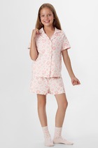 Пеньюар из кулирки для девочек из кулирки халат + майка + шорты. Халат запашной с поясом, узор в сердечко, светлые манжеты и лацканы в крапинку, длина чуть выше коленей. Светлая майка с принтом в виде котенка, узор в крапинку, окантовка в тон халата. Короткие шорты в крапинку. Несколько вариантов расцветки. Может быть парой женскому пеньюару Шоколад (продается отдельно). Размеры от 30 до 40.