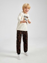 Комплект сосотоит из туники и брюк. Туника прямого силуэта, с округлой горловиной. Рукав втачной, длинный. Горловина и низ рукавов обработаны бейкой из отделочного полотна. Брюки прямые, длинные, на резинке. Низ брюк собран на резинку.