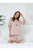 Пижама молодежная, силуэт прилегающий. Блуза с принтом, рукав полной длины. Брюки прямые, пояс на резинке.