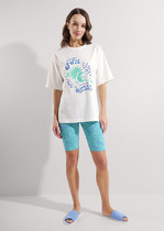 Пижама из кулирки футболка + бриджи. Серая футболка с принтом в виде мишки с букетом ромашек и бриджи с манжетом, длина чуть ниже коленей