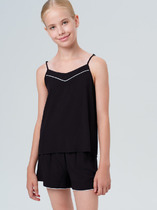 Пижама из интерлока для девочки, состоящая из джемпера и брюк. Джемпер со слегка спущенной линией плеч, с принтом на переде. Низ рукавов и брючек на манжетах.