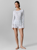 Пижама женская из гладкокрашеного трикотажного вискозного полотна с отделкой кружевом, состоящая из майки и брюк. Майка - свободного кроя, на широких двойных бретелях, с V-образным вырезом горловины. Полочка и спинка состоят из двух деталей с отрезной кружевной кокеткой. Проймы окантованы основным материалом.Брюки – свободные, средней длины, слегка зауженные книзу, с эластичной тесьмой по талии.