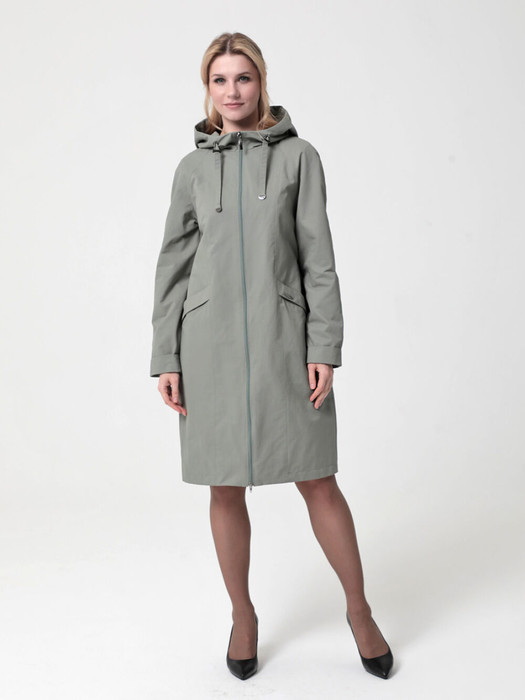 Укороченный плащ  прямого силуэта с рукавами покроя реглан и застежкой на двухзамковую молнию, позволяющую регулировать ширину шага, подходит для девушек и женщин разного возраста. Воротник - стойка, переходящая в капюшон. Вместительные карманы удобно расположены между рельефных швов. Есть внутренний кармашек на молнии.  Силуэт плаща можно менять с помощью затяжек по линии талии (со стороны спинки) и по линии низа. Подкладка в изделии выполнена из ткани в мелкую полоску. Этот весенний плащ из хлопкосодержащей ткани с водоотталкивающей пропиткой хорошо садится на любую фигуру. Добавьте яркости в аксессуарах, и Ваша весна будет комфортной и стильной!