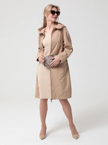 Стильный пыльник из джинсовой ткани без подклада. Перед с центральной застежкой - молнией и удобными прорезными карманами. Спинка с центральной встречной складкой в верхней части. Круглый вырез горловины дополнен капюшоном с декоративными завязками. Цельнокроеные рукава полной длины, по низу оформлены подвязами. Низ ровный, по переду защипы, длина до колена, по боковым швам - разрезы. Комфортная и легкая модель для теплой осени.