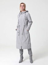 Стильный пыльник из джинсовой ткани без подклада. Перед с центральной застежкой - молнией и удобными прорезными карманами. Спинка с центральной встречной складкой в верхней части. Круглый вырез горловины дополнен капюшоном с декоративными завязками. Цельнокроеные рукава полной длины, по низу оформлены подвязами. Низ ровный, по переду защипы, длина до колена, по боковым швам - разрезы. Комфортная и легкая модель для теплой осени.