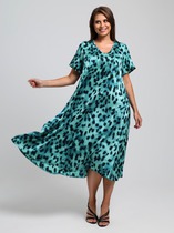 09.04 Vilatte Платье на запАх из вискозы с принтом D22.258 черный-коричневый