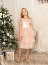 Платье из хлопкового поплина с ярким набивным принтом, декорированное оборками на рукавах. Круглый вырез горловины, короткие рукава-реглан, застежка на одну пуговицу на спинке. Завышенная линия талии. Без подкладки.На ребенке представлен размер 140:- Ширина изделия по линии груди 38,5 см- Ширина изделия по линии талии 37,5 см- Ширина по низу изделия 99 см- Длина изделия 72,5 смРазница между размерами составляет 1,5 см.