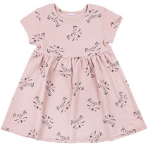Трикотажное платье миди в полоску, декорированное металлизированным принтом спереди. Модель без рукавов, с круглым вырезом горловины и эластичной резинкой на талии.На ребенке представлен размер 140:- Ширина изделия по линии груди 34 см- Ширина изделия по линии талии 28 см- Ширина по низу изделия 48 см- Длина изделия 87 смРазница между размерами составляет 1,5 см.