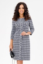 Стильное платье, модного А-силуэта, выполнено из двух видов ткани, по переду из трикотажа с добавлением вискозы и спинка – комбинация трикотажа и высококачественной стеганки. Перед платья декорирован стильной печатью, что придает модели особый шарм. Горловина стойка, с застежкой на кнопки. Рукав втачной, полной длины. По низу переда платье с застежкой на кнопки. Модель удобная и практичная, вы будете в нем выглядеть неотразимо.