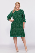 Платье женское полуприлегающего силуэта верху с расширением к низу, отрезное по линии талии, с завязывающимся поясом и в дополнении ремень. С застёжкой по планке на петли и пуговицы, по боковым разрезы. Перед с нагрудными выточками. Рукава втачные, одношовные, длинные, понизу с разрезом, двумя мягкими складками и притачными манжетами на петлю и пуговицу. Воротник стояче-отложной на отрезной стойке застёгивающийся на петлю и пуговицу