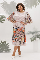 Женственное платье приталенного силуэта из легкой ткани "Ниагара". Округлая горловина на внутренней обтачке. Втачной рукав длинной 3/4 присборен на манжету. Модель отрезная по линии талии, присборена на эластичную резинку. Низ ровный, без разрезов. Линию талии подчеркнет пояс - "кушак".