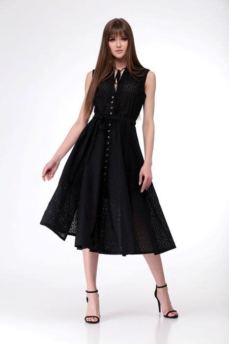 Хлопоковое ришелье на подкладке со сквозной застёжкой спереди на петли и пуговицы. Внизу по рельефам разрезы.