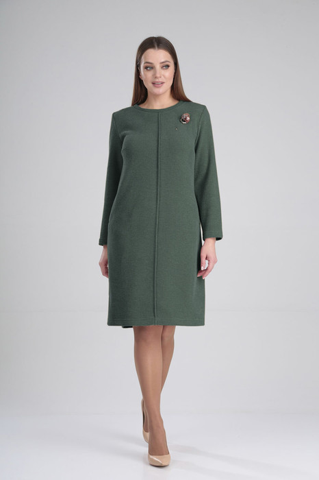 Тёплое женское платье свободного покроя может украсить гардероб многих женщин. Круглый вырез горловины, обработанной бейкой, по центру переда защип на 0,5см и прорезные карманы с листочкой. Спинка платья со средним швом. Декоративное украшение прилагается.