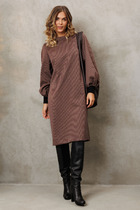 Трикотажное платье средней длины, с красивой горловинкой - стойкой. Особенно красивый трикотаж - немного меланжевый и имеет еле-заметную тончайшую люриксовую ниточку, При чем, блеск настолько мягко проигрывается, что очень мало заметен, но в то же сремя придает богатства и эффектого вида изделию. По этому платье прекрасно подойдет для любого случая в жизни.