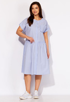 Платье А-образного силуэта, длиной ниже колена. Платье выполнено из однотонной ткани.