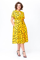Платье женское из смесовой хлопчатобумажной ткани с эффектом крэш. Платье с открытыми плечами, с бретелями-завязками, с резинкой по горловине и верху рукава. В боковых швах карманы, по низу платья два волана. По талии и по низу рукава резинка.