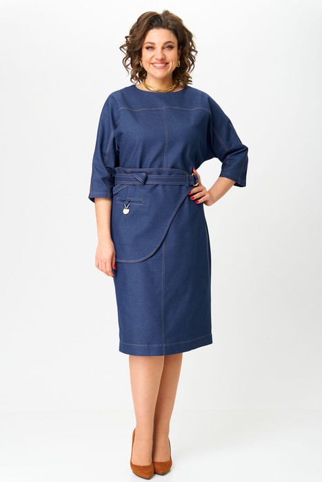 Платье женское джинсовое, прямого силуэта, выполнено из высококачественного смесового хлопка. Длина миди, цельнокроенный покрой рукава, прямой силуэт в сочетании с натуральным материалом дарят комфорт и ощущение лёгкости и свободы, а съёмный пояс с баской подчёркивают линии фигуры и создают гармоничный силуэт. Его универсальность делает его идеальным как для деловых встреч, так и для приятных дружеских и романтических встреч. Одно платье – три образа!
