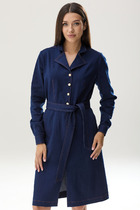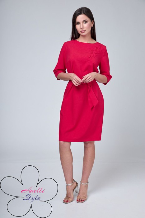 Любимая нами модель повседневного платья для ярких будней!Прямой силуэт, элегантный вырез округлой формы по переду и v-образный по спинке, втачной 3/4 рукав. Удобные карманы в боковых швах. По среднему шву спинки имитация застежки на пуговицы. Дополнено съёмным завязывающимся поясом. Правильная длина ниже колена.