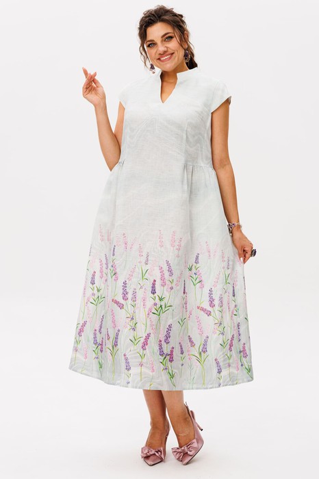 Это платье из благородного беларусского льна в цвете "лавандовый аромат" - истинная поэзия женственности, воплощенная в ткани.