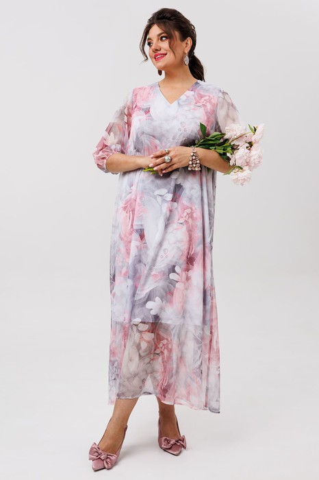 Воздушное и невесомое, словно летнее утро, это платье от Анелли очаровывает своей мягкой женственностью. Свободный силуэт-трапеция струится вдоль фигуры, даря комфорт и легкость каждому движению. V-образный вырез горловины подчеркивает изящество линий, а втачные рукава три четверти с нежной резинкой по низу добавляют образу утонченную аккуратность.
