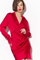 Особую изюминку передней части платья придает отлетная деталь с эффектом запаха, декорированная изящной пряжкой, обтянутой основной тканью. Задняя часть с застежкой на потайную молнию обеспечивает идеальную посадку по фигуре.