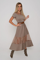 Изысканный дизайн сочетает в себе сдержанную мягкость и легкость в виде отделки низа юбки гипюром, добавляя нотку игривости и романтики, делая платье особенно привлекательным.
