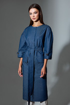 Платье полуприлегающего силуэта, умеренного объема, длиной до колена.