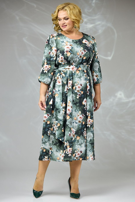 Женское платье из легкой летящей ткани свободного силуэта. Рукав 3/4 со сборкой по пройме и с резинкой по низу рукава. К платью прилагается пояс из той же ткани. Длина платья 126 см
