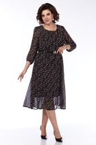Платье женское свободного силуэта расширенное к низу выполнено из шифона.Перед и спинка с отрезной кокеткой ,нижняя часть выполнена из двух деталей внахлёст со складками по верхнему срезу. На спинке "капелька " и застёжка на навесную петлю и пуговицу. Рукава втачные одношовные длиной 3/4 со сборкой на резинку по низу.Круглый вырез горловины окантован. Платье на атласной подкладке от кокетки.
