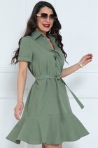 Это платье-рубашка с отложным воротником и короткими рукава с отделочными фигурными манжетами идеально впишется в городские образы в стиле кэжуал. Легкая вискозная ткань приятна для кожи и красиво струится во время носки. Застёжка на пуговицы позволяет регулировать глубину выреза. Модель свободного кроя дополнена оборками, отделочным карманом по переду и функциональными карманами в боковых швах. Длина позволяет носить платье как на каблуке, так и на плоском ходу.