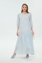 Платье женское, в нарядно-романтическом стиле, отрезное по линии талии, выполнено из лёгкой, струящейся плательной ткани. На трикотажной подкладке.