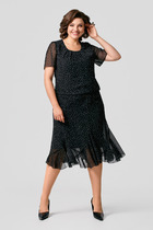 Платье женское,нарядное,свободного силуэта, А-образной формы. Выполнено из двух разных тканей с центральным швом по переду, рукав втачной 3/4 с манжетом- завязкой. Платье на подкладке.