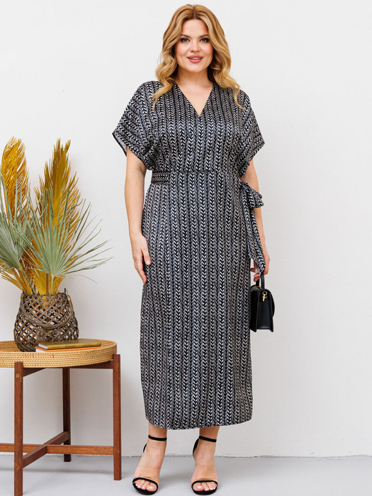 Элегантное платье на запах. Рукав цельнокроенный кимоно.  Платье отрезное по линии талии. Силуэт платья - прямой, Оно выполнено из плотного атласа, благодаря чему, оно красиво струится и развивается при хотьбе. Длина платья - 132 см.