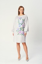Платье женское, прямого кроя, длиной по щиколотку. Рукав втачной одношовный. Горловина окантована косой бейкой. В комплекте нижние платье на регулируемых бретелях.