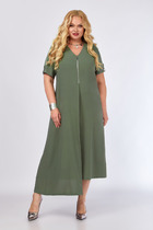 Платье полуприталенного кроя, выполнено в романтичном стиле из плательной тонкой ткани, верх  изделия полуприлегающий декорирован накладными карманами с клапанами. Юбка расклешенная (полусолнце), по боковым юбки карманы декорированы клапанами. Изделие дополнено съемным поясом. Застежка- планка с кнопками.