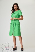Платье женское стильное нарядное повседневное выполнено из хорошего красивого хлопка в сочетании с шитьем. Вырез горловины отложной воротник, застежка доверху на обметанные петли и пуговицы. Рукав реглан из отделочной ткани (шитье), по центру рукава обработан разрез. Платье отрезное по талии, подрез фигурный по полочке и спинке, придает модели элегантный приталенный вид. Волан по низу платья из отделоной ткани (шитье). Декором служат отделочные пуговицы.