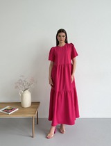 Платье женское нарядно-повседневное А-образного силуэта, выполненео из креп-шифона. Платье на трикотажной подкладке. Вырез горловины круглый на обтаке, по спинке астежка на навесную петлю и пуговицу. Рукав втачной по низу собран на резинку. В бокох швах обработаны разрезы, низ платья фигурый.Декором платья служит принт самой ткани. Пояс в комплекте.