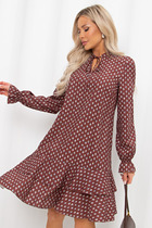 Платье женское нарядно-повседневное выполнено из однотонного хлопка в сочетании с отделочной тканью (шитье). Вырез горловины V-образный. Рукав втачной "реглан" по спинке и полочке собран на резинку. По низу платья притачной волан из отделочной ткани(шитье0. В боковых швах обработаны карманы. Декорм платья служат детали из отделочной ткани.
