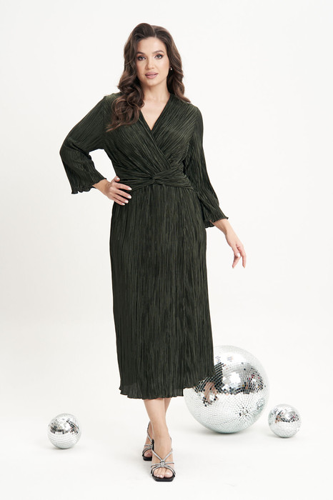Темно-зеленый цвет-фаворит сезона 2024-2025 года. Женственный силуэт, подчеркивающий линию талии, и невероятная фактура гофрированного полотна делают эту модель не только изысканно-красивой, но и мега удобной.