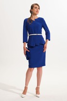 Платье женское, льняное,слегка расклешённое к низу. Платье имеет ассиметричную форму заканчивающуюся воланами.При пошиве используется два вида ткани. По переду имеется нагрудная выточка. По центру платья декоративная вышивка. Спинка со средним швом.
