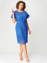 Платье приталенного силуэта отрезное по линии талии из мягкой вельветовой ткани. Верхняя часть переда с нагрудной вытачкой. Спинка со средним швом и потайной молнией. Рукав втачной со сборкой по окату. По  низу рукава и по низу изделия волан. Длина платья -  125 см, длина рукава - 40 см.