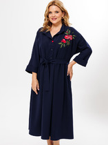 Платье с круглым вырезом горловины, без воротника, застежкой на петли и пуговицы по спинке. Платье отрезное по линии талии, с втачным поясом. Верхняя часть переда с рельефами, выходящими из проймы. Верхняя часть спинки с талиевыми вытачками, фигурным вырезом горловины и фигурным вырезом по низу, застежкой на две петли и пуговицы. Нижняя часть платья со сборкой по шву притачивания к поясу. Рукав втачной, короткий. В боковых швах расположены карманы.