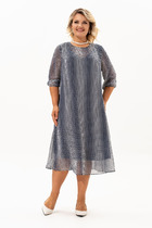 Платье без воротника, на бретелях- завязках , застежкой на потайную молнию в среднем шве спинки. По переду с нагрудными вытачками. По спинке- со средним швом, талиевыми вытачками. Вырез спинки-V-образный. Планка спинки присборена на резинку.